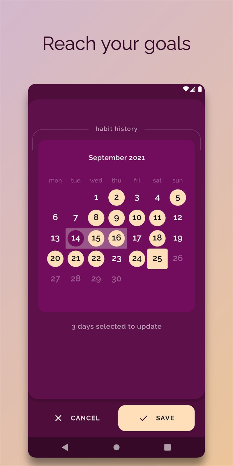 Quickly edit your habit history for when you miss a day.